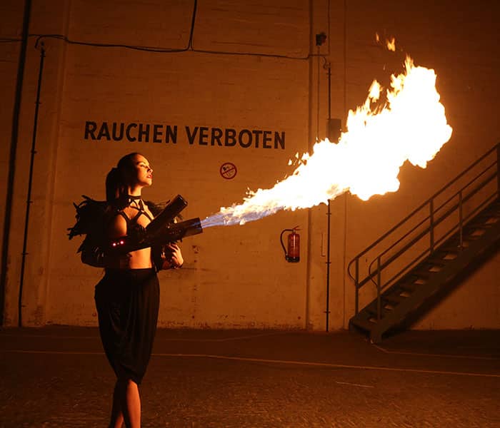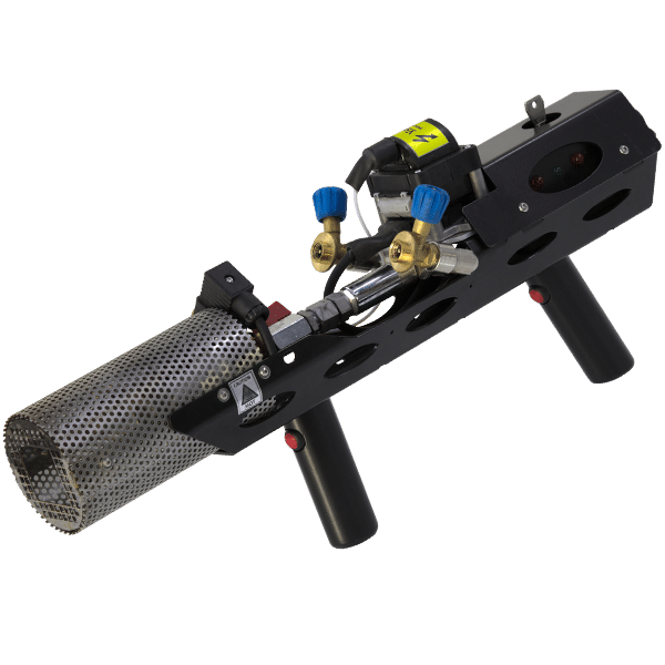 Explo GX3 Handflamer Handfackel Torch Gun. Die Handfackel ist ein Bühneneffektgerät für manuelle Flammenstöße. Mit einer Reichweite von ca. 2,5 Meter und einem futuristischen Design ist sie der „Eye Catcher“ für alle Bühnenshows. Zahlreiche Sicherheitsaspekte, wie abziehbarer Schlüsselschalter, doppelt ausgeführter Sicherheitstaster und die Tatsache, dass die Handfackel sofort und ohne viel Verkabelung weggelegt werden kann, sind nur einige Vorteile dieses Effektgerätes.
