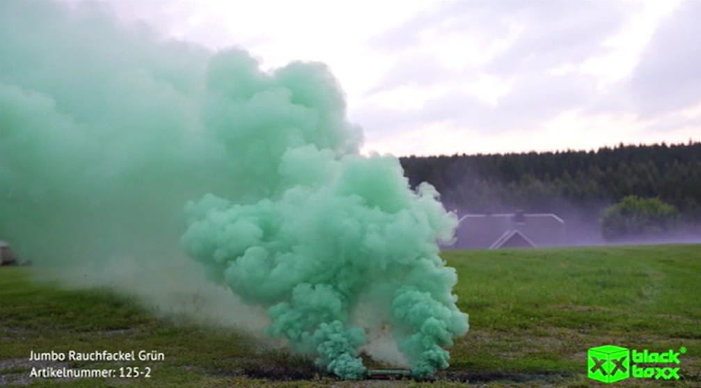 Grüner Rauchkörper mit zweiseitigem Rauchausstoß, intensiver Farbe und extrem starker Rauchentwicklung