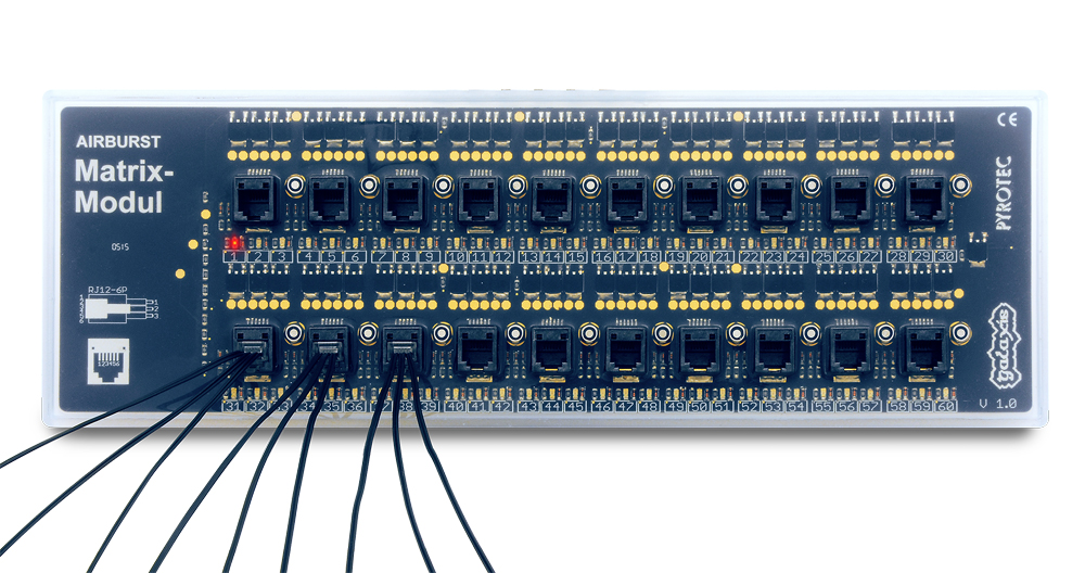 Die Airburst-Matrix wird vor allem dort verwendet wo ein häufiger und zeitsparender Reload erforderlich ist. Z. B. auf Tourneen oder bei fest installierten Shows, etwa in Freizeitparks. Die Airburst-Matrix wird hierbei in der Regel mit samt Galaxis PFE Advanced und Montage-Platte auf einer Traverse installiert.