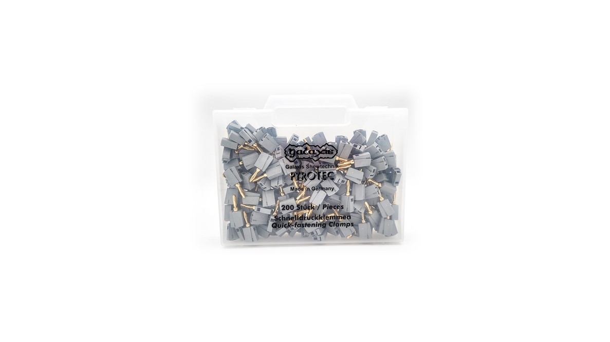 Koffer für 200 Schnelldruckklemmen für Galaxis PFE Advanced 10 Outputs, PFE Advanced 20 Outputs, PFE Profi 3, PFE Profi 10, PFE Profi 50, PFE Profi Power, PFE Profi Midi 1 und Matrix-Module.