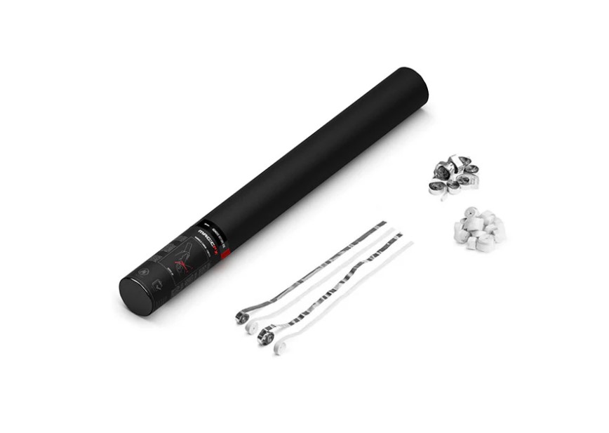 MAGICFX® Handheld Cannon 50cm Metallic Streamer weiß+silber