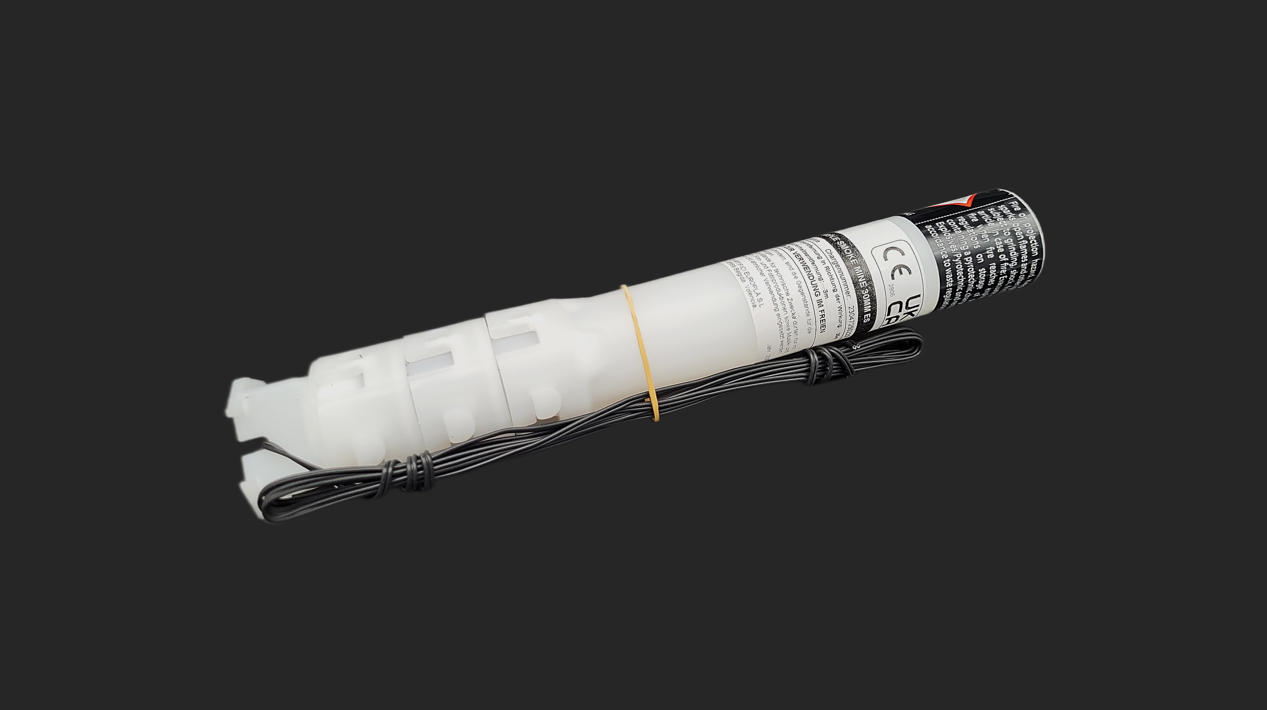 30mm Mine mit einer hellgrünen Rauchsäule aus spanischer Produktion. Der 2 Meter E-Anzünder ist bereits fest verbaut.