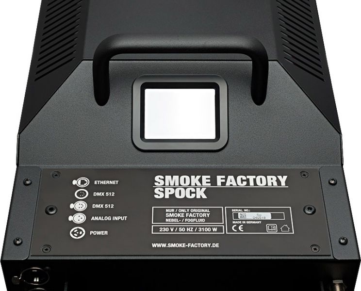 Die SPOCK ist die zweite Maschine aus dem Hause Smoke Factory die mit neuer digitaler Technik und einem Touch- Display ausgestattet ist. Neben der neuen Düse, die eine Lautstärkereduzierung um bis zu 20 % bewirkt ist die SPOCK mit Features wie einer Kennlinienanpassung und einem Stundenzähler für Heiz- und Nebelzeit ausgestattet. Durch den Einsatz zwei verschiedener Fluidpumpen, liefert die SPOCK auch im unteren Bereich einen konstanten und gleichmäßigen Nebel.